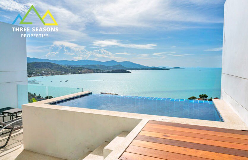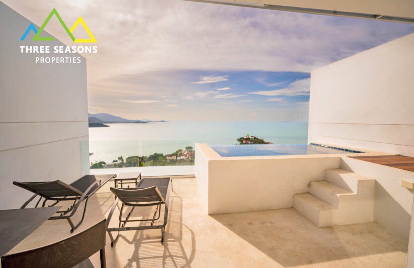 This Panoramic Seaview apartment is located in a luxury residence in the hills of Bang Rak.offering 180 degrees of unparalleled sea views from Chaweng Bay, Hills of Chaweng, Bays of Bangrak, Fisherman’s Village and Mae Nam, Angthong Marine Park, Big Buddha, Koh Som & Koh Phangan, Sunsets.