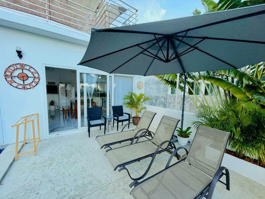 Recently renovated, the villa features a bright open-plan living and dining area, a fully equipped kitchen, and a private swimming pool—ideal for relaxed tropical living. Enjoy partial sea views from the living room and stunning panoramic views from the rooftop terrace, perfect for sunsets and entertaining.