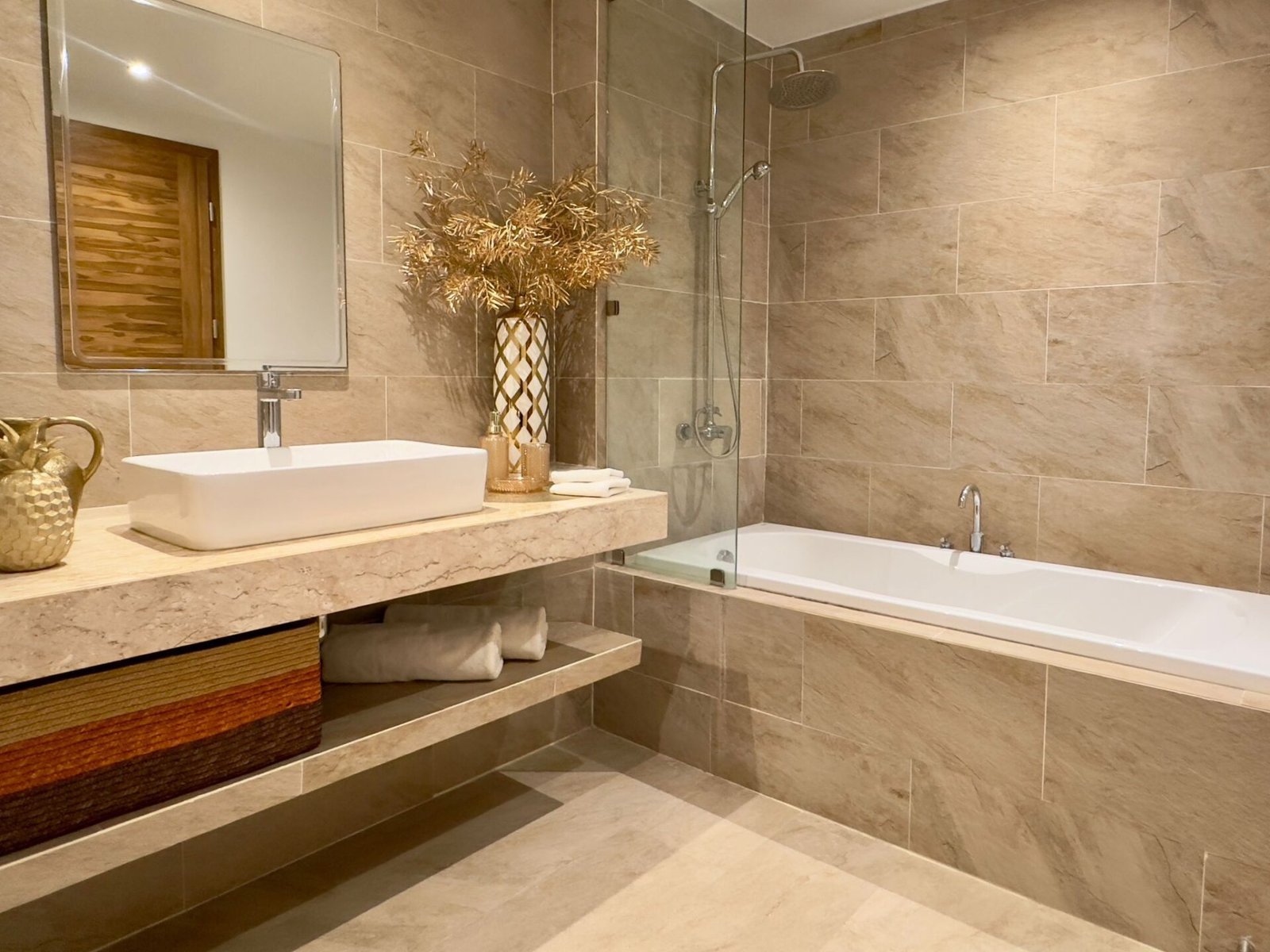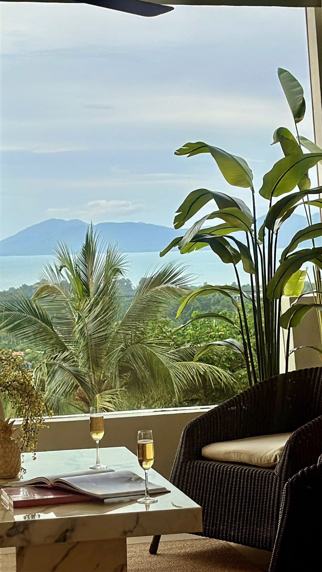 Spacious 110 sqm corner apartment with breathtaking sea views toward Phangan Island and palm trees, located in a quiet and secure residential area of Maenam Soi 2