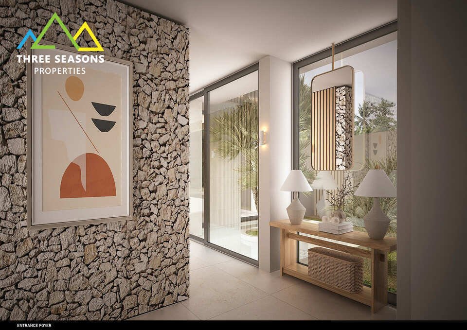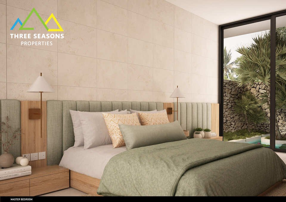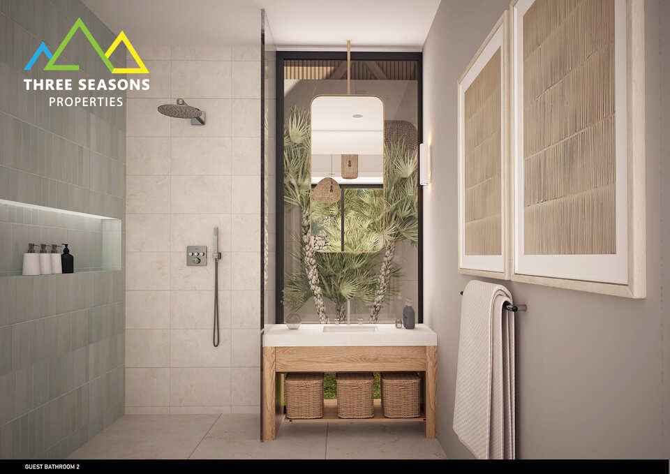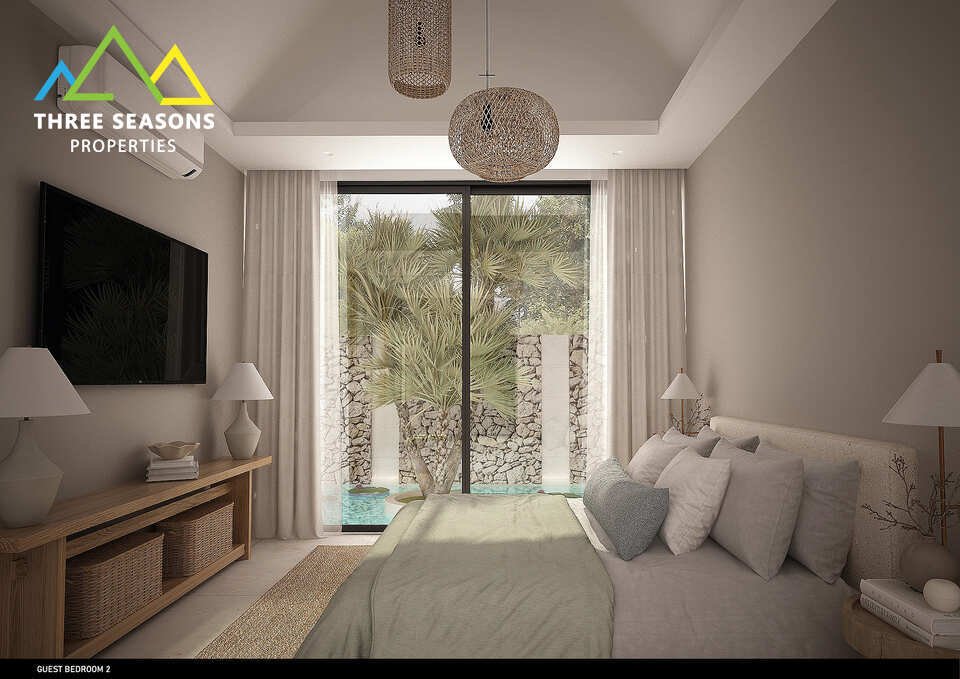 The spacious interiors feature an open-plan layout that seamlessly connects living, dining, and kitchen areas, creating an inviting space for relaxation and entertaining. Each of the three bedrooms is thoughtfully designed to provide maximum comfort, with elegant furnishings and en-suite bathrooms. The villa’s outdoor spaces include a private pool, sprawling terraces, and beautifully landscaped gardens, perfect for enjoying the warm island sunshine and cooling ocean breezes.