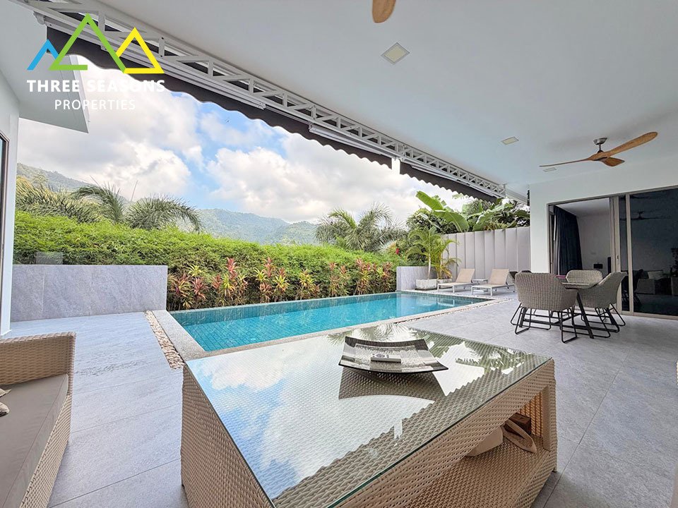 Located just 5 minutes from the center of Lamai and all amenities, this charming 3-bedroom private pool villa offers a peaceful setting surrounded by nature, with stunning mountain views.