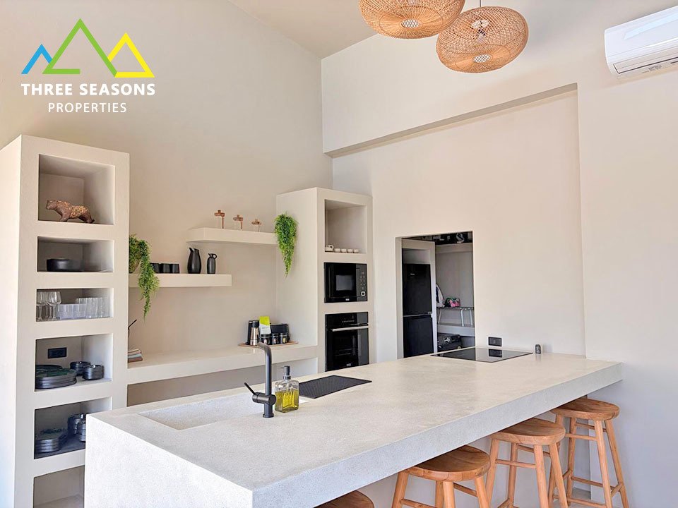 Upon entering, you are welcomed into a bright and inviting living area, seamlessly connected to a fully equipped contemporary kitchen. Designed with both elegance and functionality in mind, this space opens naturally onto the outdoor terrace.