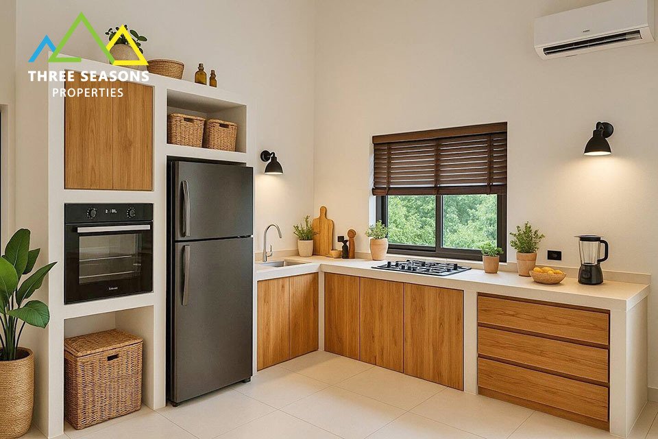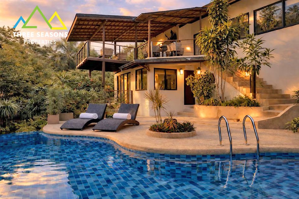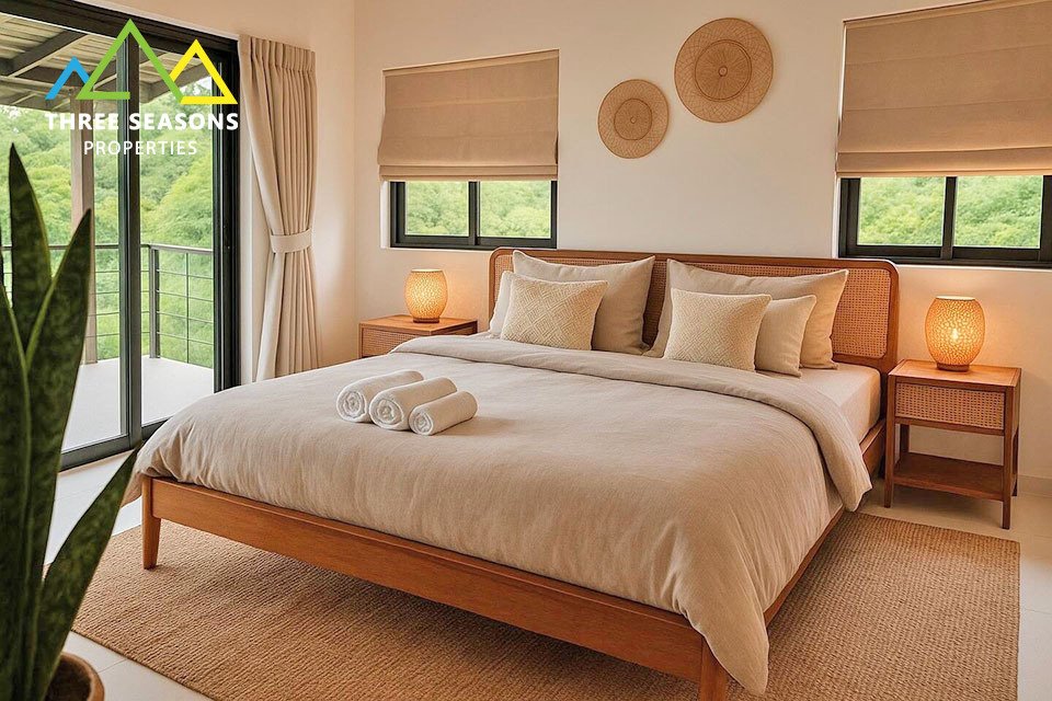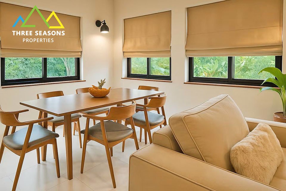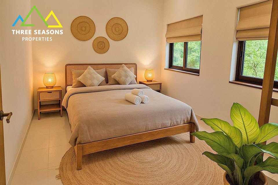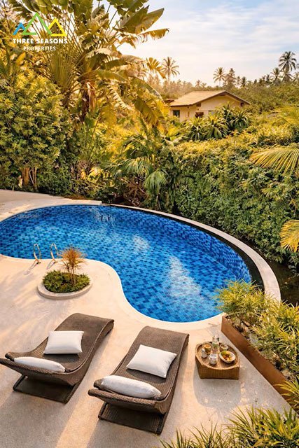 This beautifully renovated 3-bedroom villa is located in a peaceful setting and sits on a generous 800 sqm plot. The property offers bright open-plan living spaces, modern finishes, and a piscina privata surrounded by lush tropical greenery.