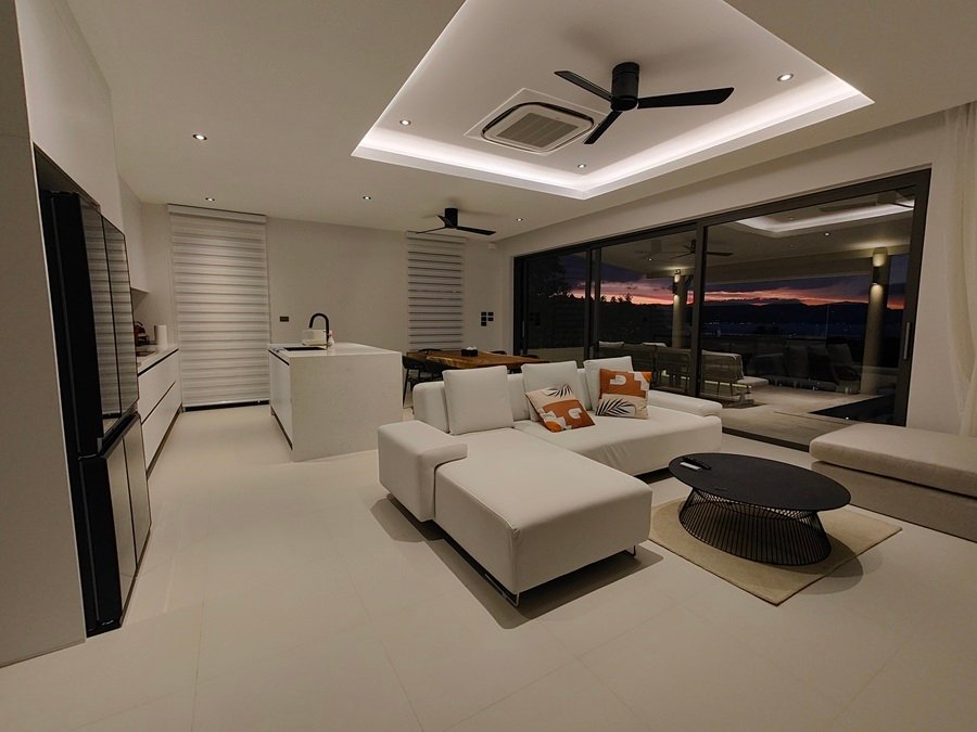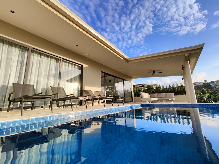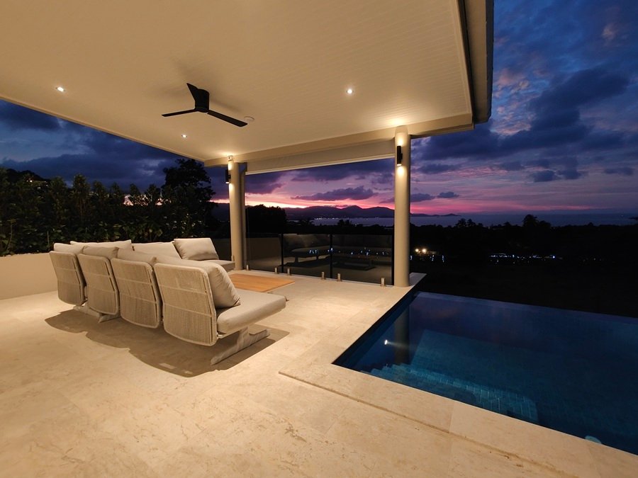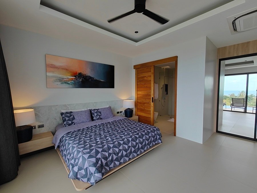 Modern and comfortable villa set over 2 floors with one flight of stairs, offering beautiful sea views and a convenient location near Choeng Mon.
