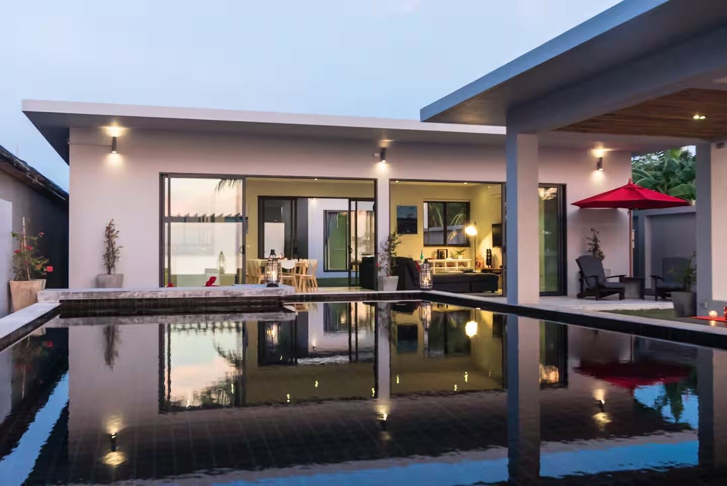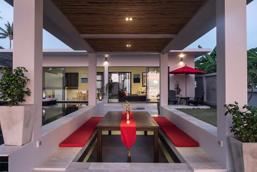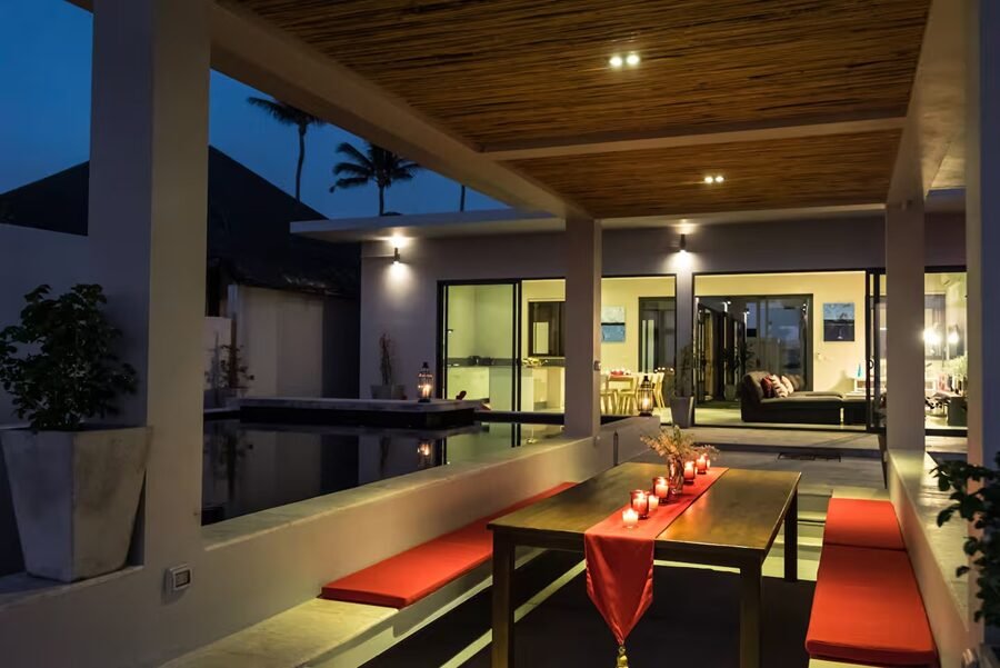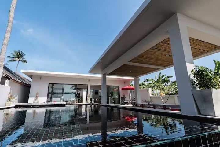 This elegant 4-bedroom private villa combines tropical design with comfort and privacy, surrounded by palm trees and the sound of the sea.