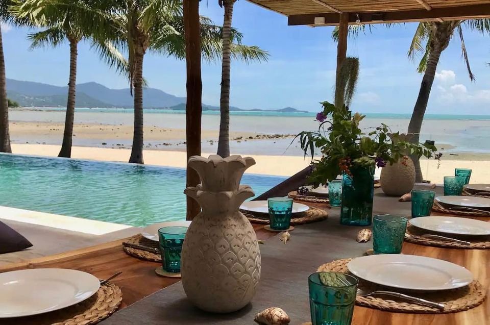 Stunning 4-bedroom beachfront villa in Plai Laem, offering direct access to the beach and spectacular outdoor living spaces. The villa features an amazing beachfront terrace, perfect for entertaining and enjoying tropical sunsets by the sea.