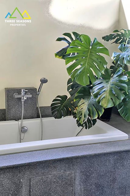 The villa layout is thoughtfully separated between the main building and a charming independent master suite with ensuite bathroom and outdoor bathtub — perfect for privacy, guests, or even rental flexibility.