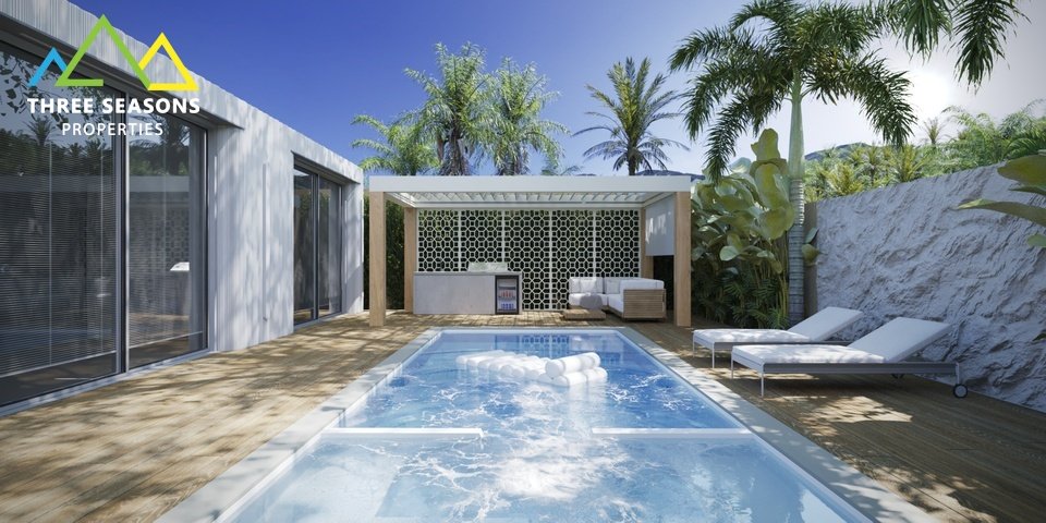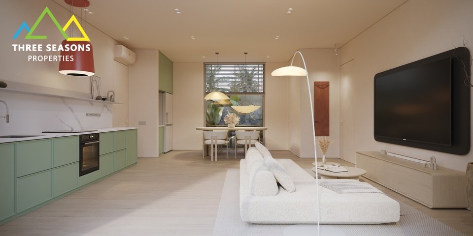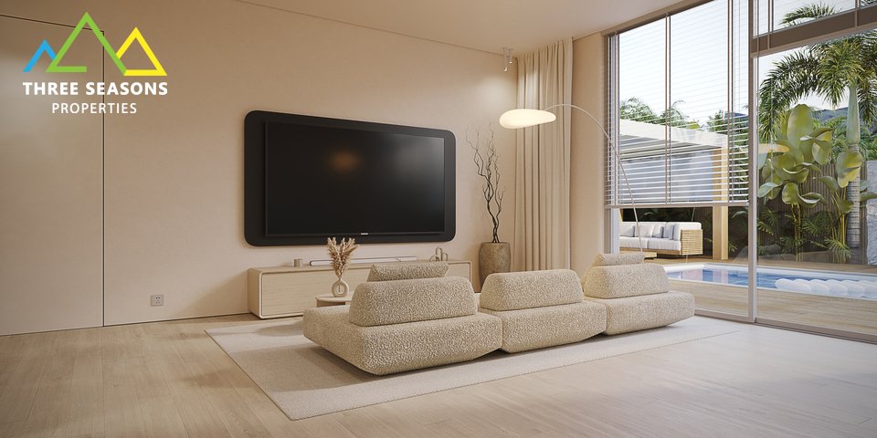 Step inside to an open-plan living area flooded with natural light through 3-meter panoramic windows, connecting the indoor space effortlessly with the private 3.2 × 7 m swimming pool and built-in jacuzzi. The villa comes fully furnished, equipped with a stylish kitchen, premium aluminum doors, hidden LED lighting, and SPC flooring with a lifetime warranty.