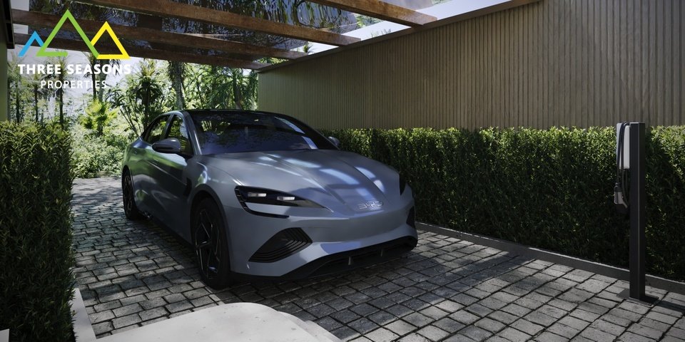 Perfect for both residential living and investment, the villa also features a carport with EV charger, smart CCTV system, quartz or sintered-stone countertops, and premium UV-protected decking with a natural wood-grain look.
