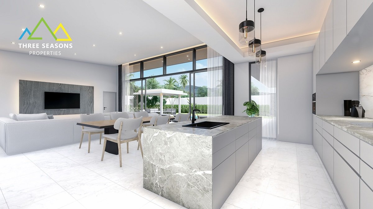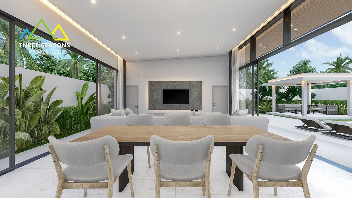 Private collection of just 13 modern tropical private pool garden villas situated in a prime location just minutes away from Fisherman’s Village. Experience the ultimate blend of luxury and nature in this serene paradise. The villas are available 3 bedrooms only with a large flexibility in design and layout.