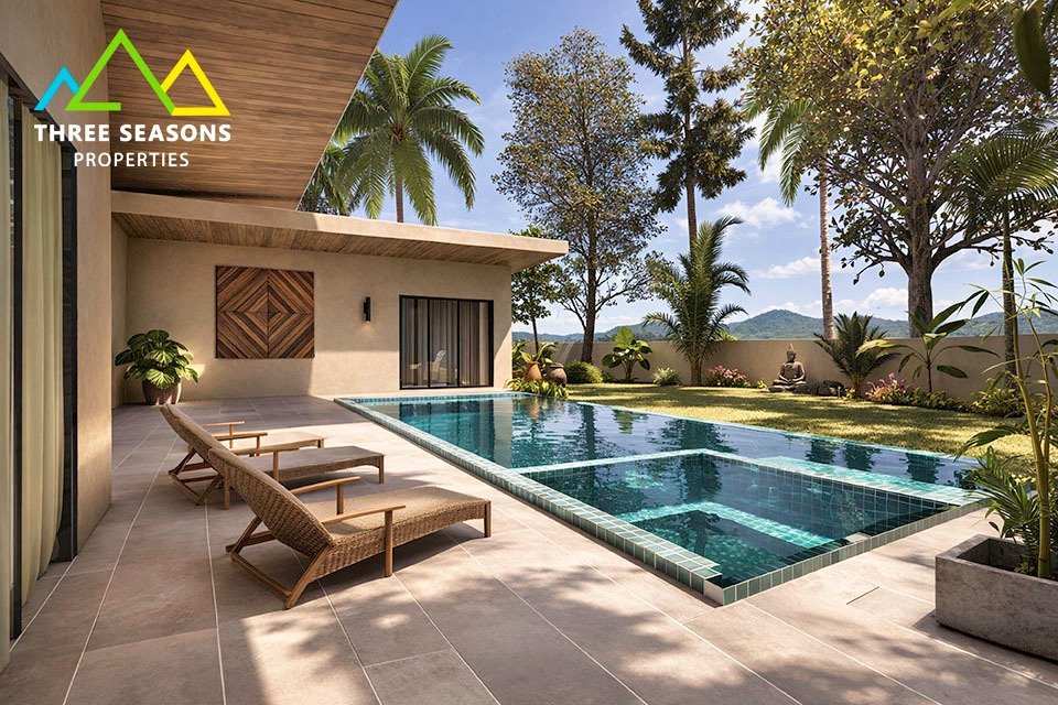 The villa boasts four spacious bedrooms, each with its own en-suite bathroom, making it ideal for families or as a high-return investment property. The open-plan living and dining area connects effortlessly to a modern fully equipped kitchen, all overlooking the private swimming pool and landscaped garden.