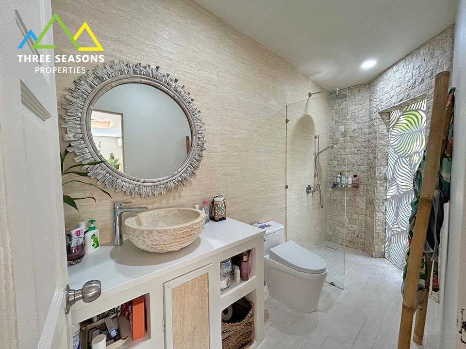 With three well-appointed bedrooms, including a master ensuite and two guest rooms sharing a bathroom, the layout is both practical and comfortable. The villa comes fully furnished with tasteful, non-industrial furniture and thoughtful design details such as mosquito nets on all windows.