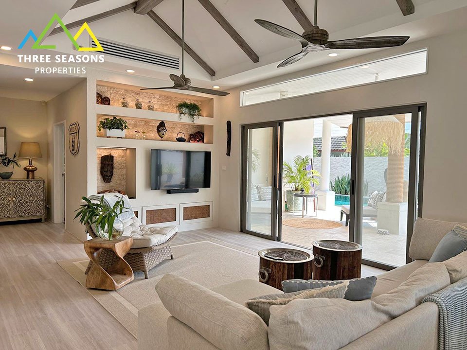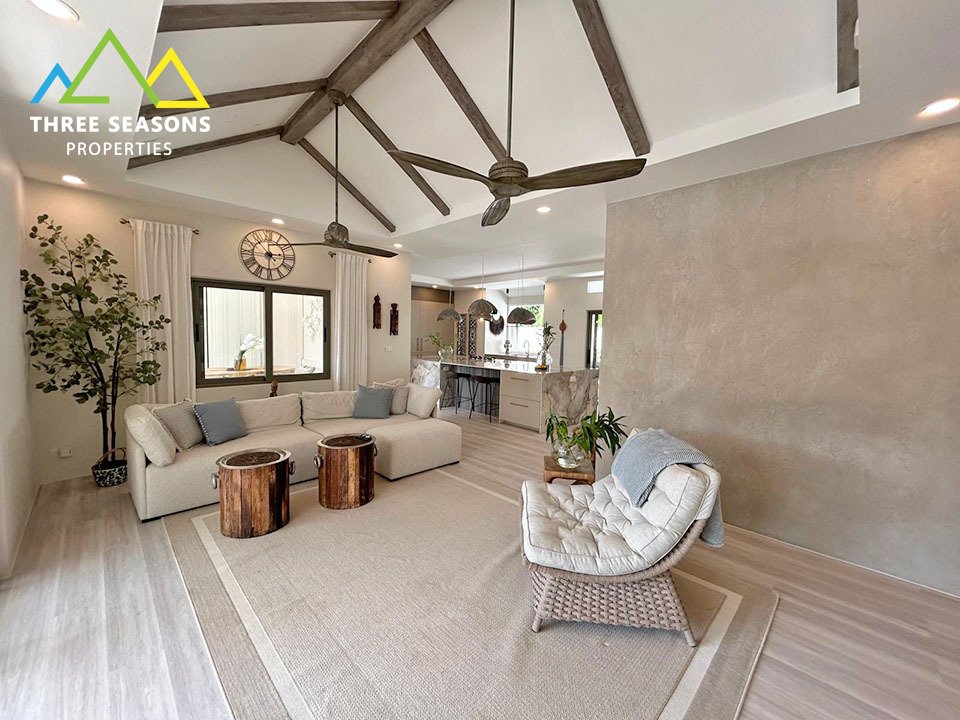 This beautiful single-story villa is located just 250 meters from the beach in a quiet and green area of Nathon. With a solid construction and careful renovations completed over the past five years, the property offers a warm, elegant atmosphere, ideal for a primary residence or long-term rental investment.