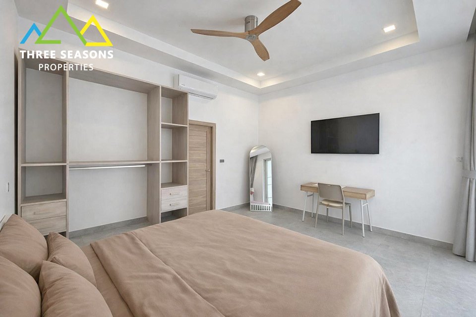 The villa features four ensuite bedrooms, including two directly connected to the main living space — ideal for families with young children or guests. Every room benefits from abundant natural light, mosquito protection, and serene views of the surrounding tropical landscape.