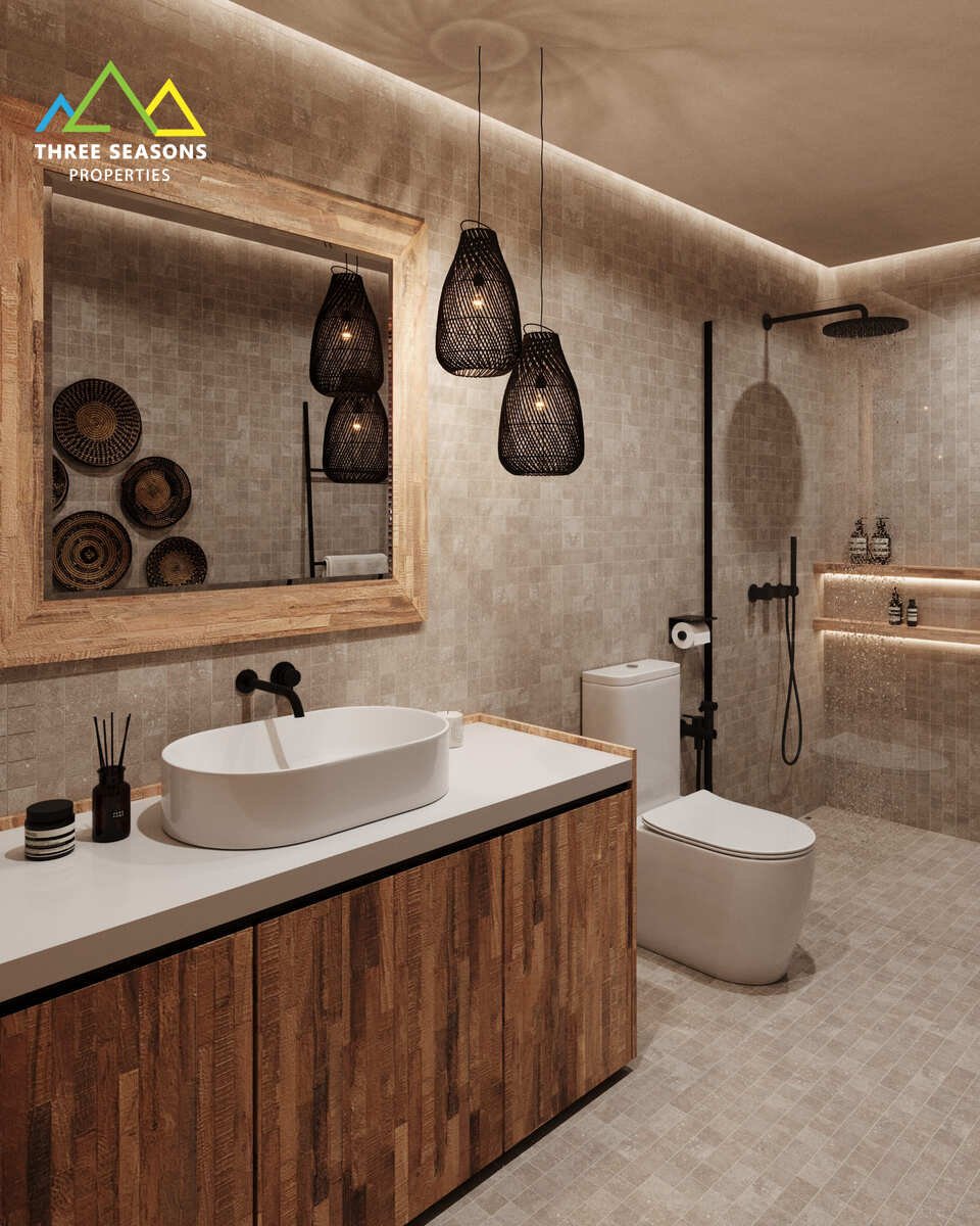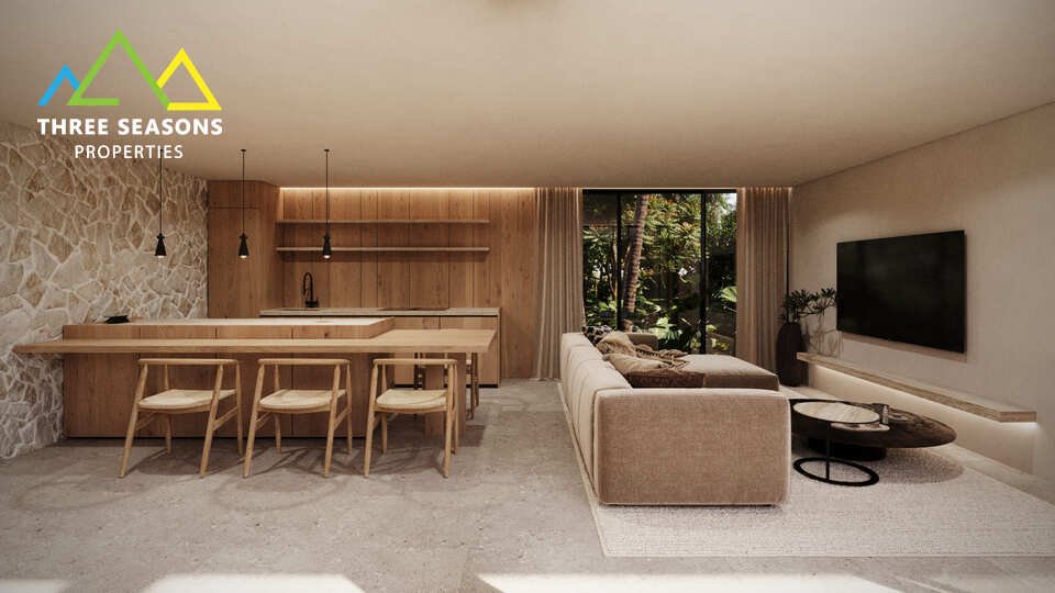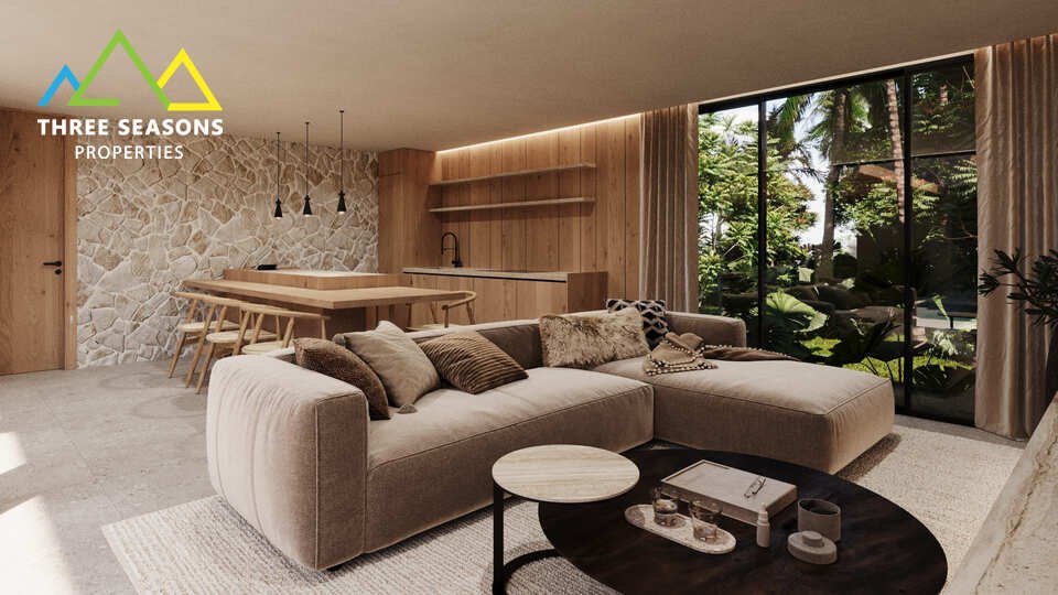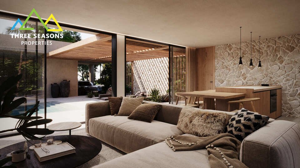 Open-plan living areas are carefully designed to create a seamless transition between indoor and outdoor spaces, shaping a quiet, balanced atmosphere that invites relaxation and mindful island living. Every detail has been considered to provide comfort, presence, and a refined tropical lifestyle.