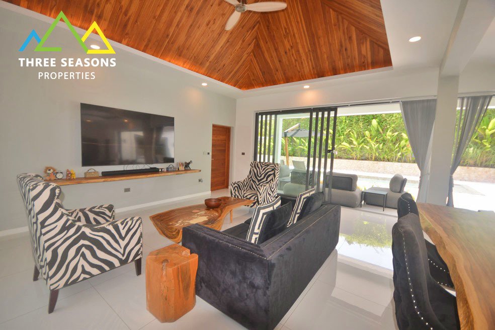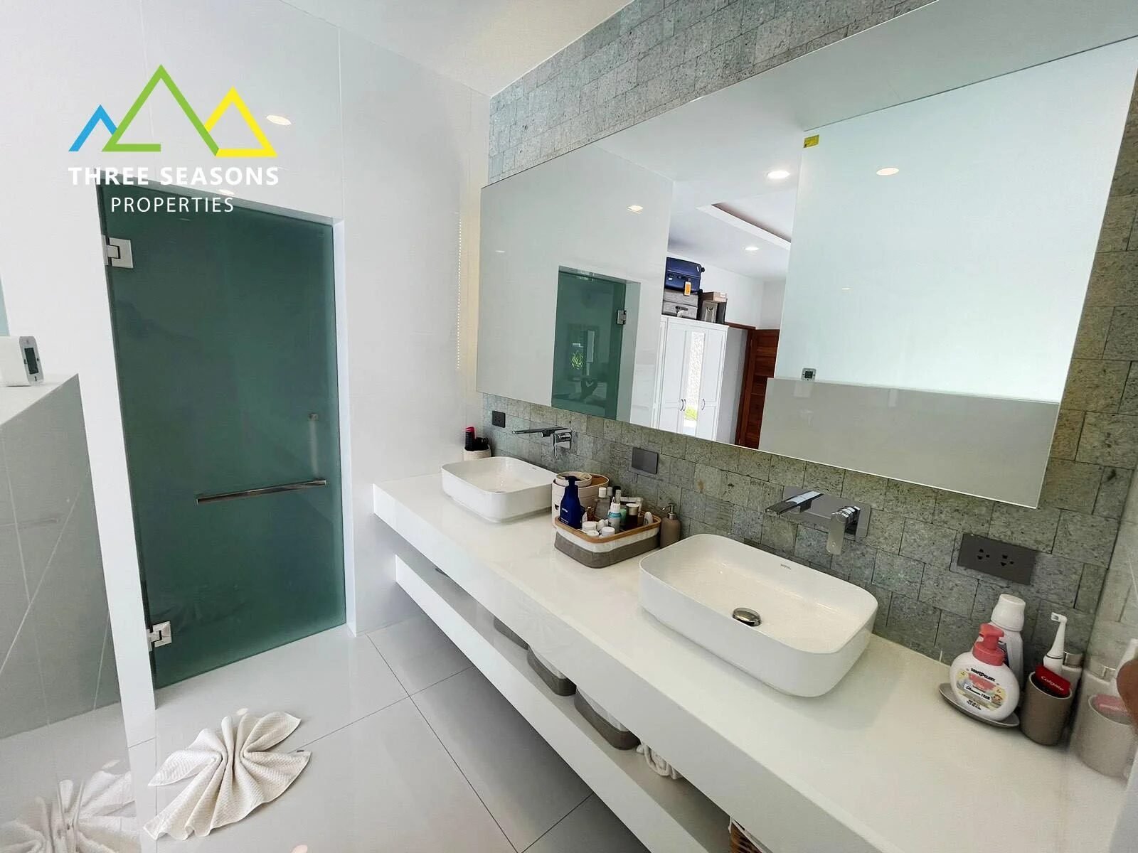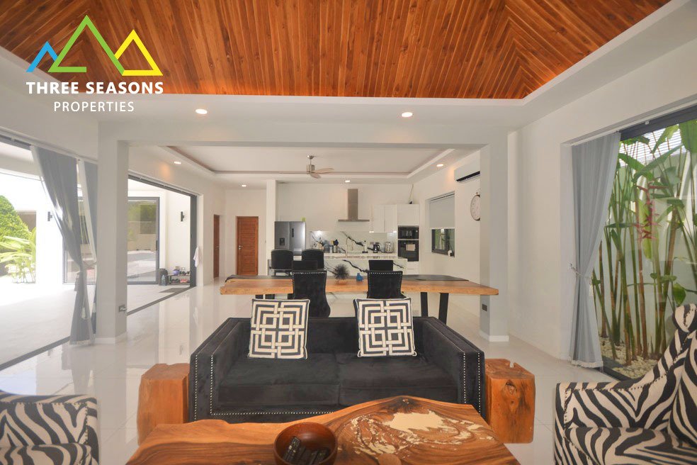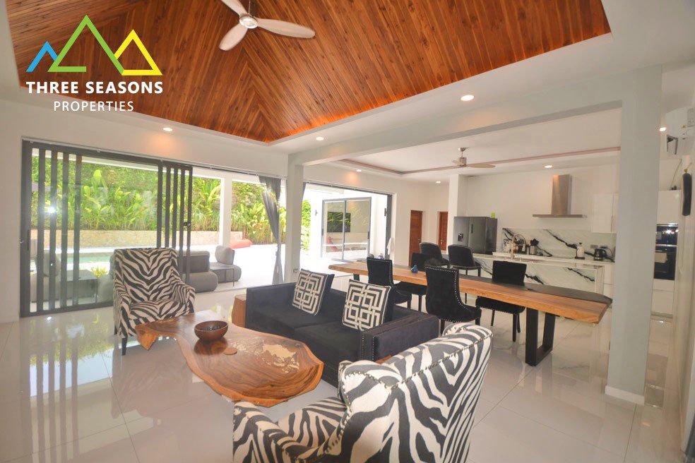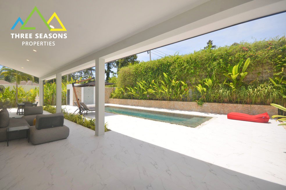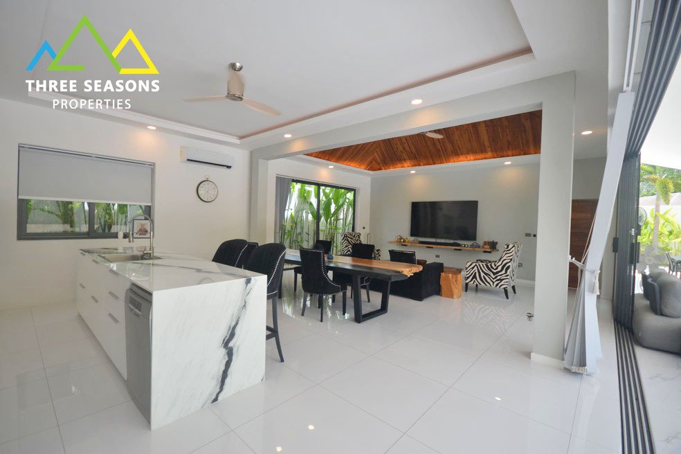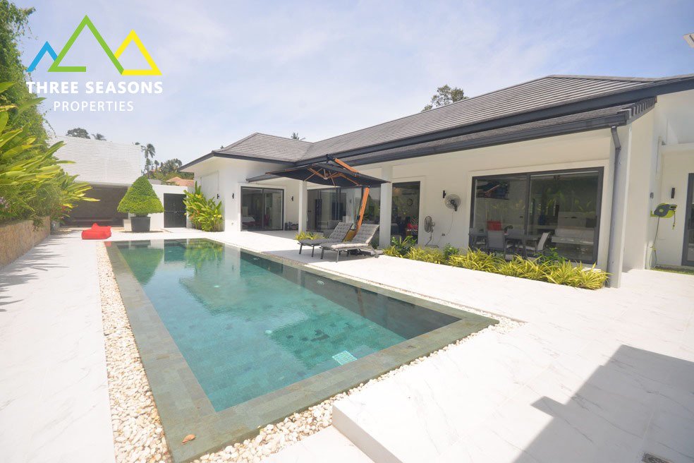 Amazing tropical villa with 3 bedrooms a gym room, solar panels and a huge outside living area.
