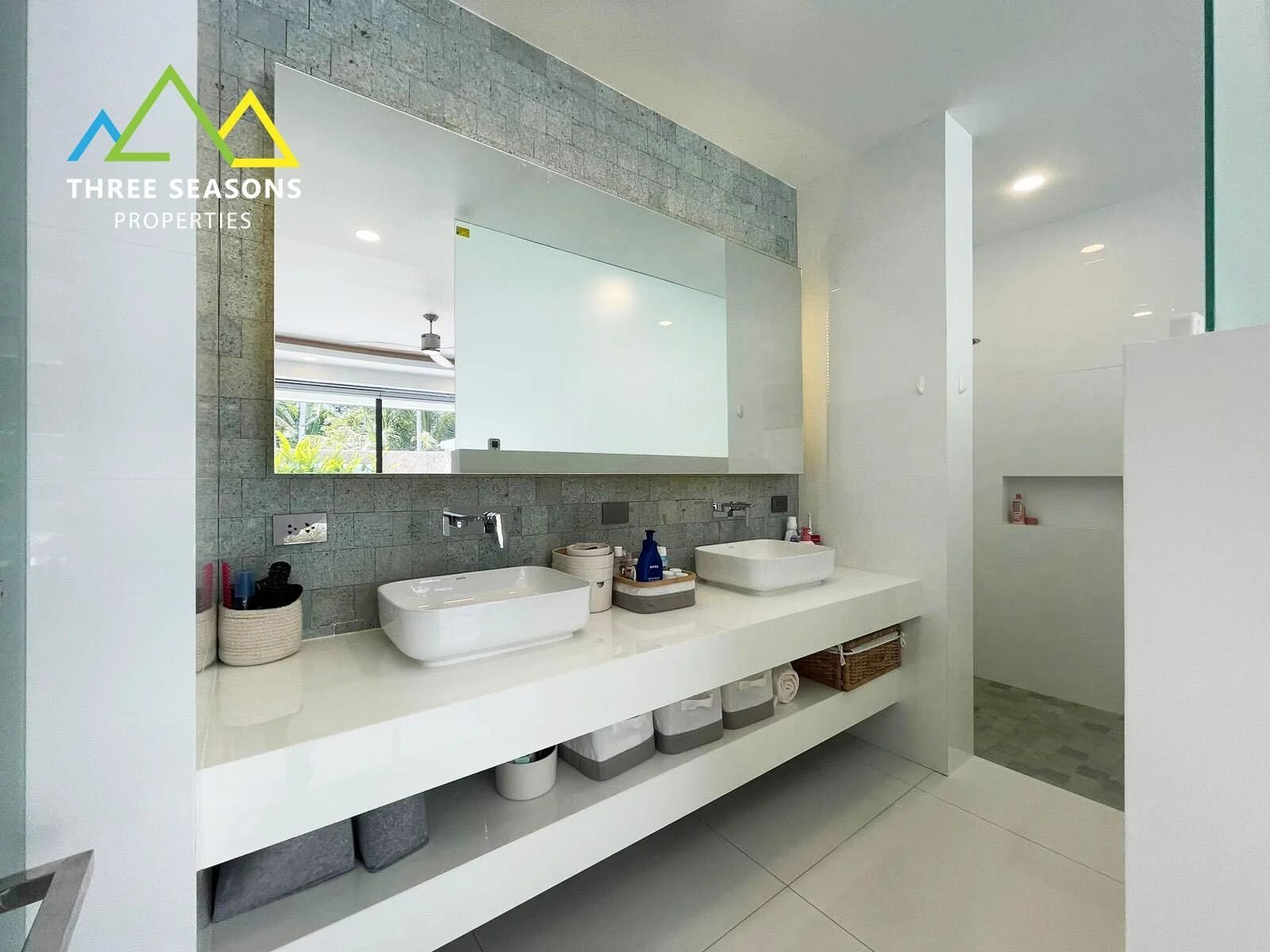 We would like to introduce you to this breathtaking garden view villa in the beginning of Maenam, Koh Samui. This villa is equipped with a fully furnished European style kitchen that is even included with a dishwasher.