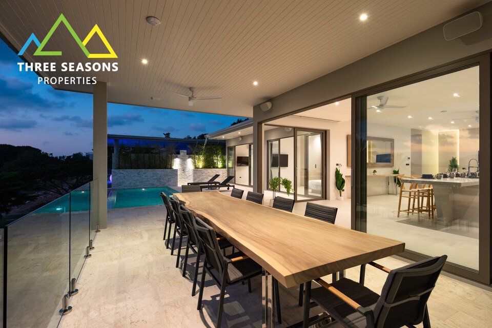 Discover luxury coastal living in this immaculate, newly built villa located in sought-after Bang Rak. Designed for comfort and entertaining, the home features four spacious bedrooms and five modern bathrooms, high-end finishes throughout, and an open-plan living area that frames panoramic sea and sunset views.