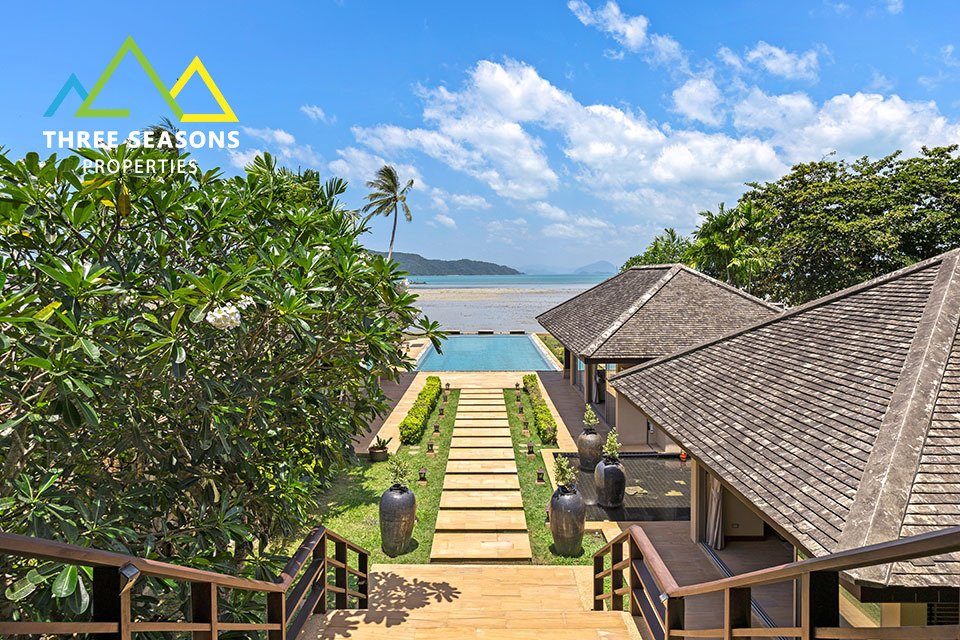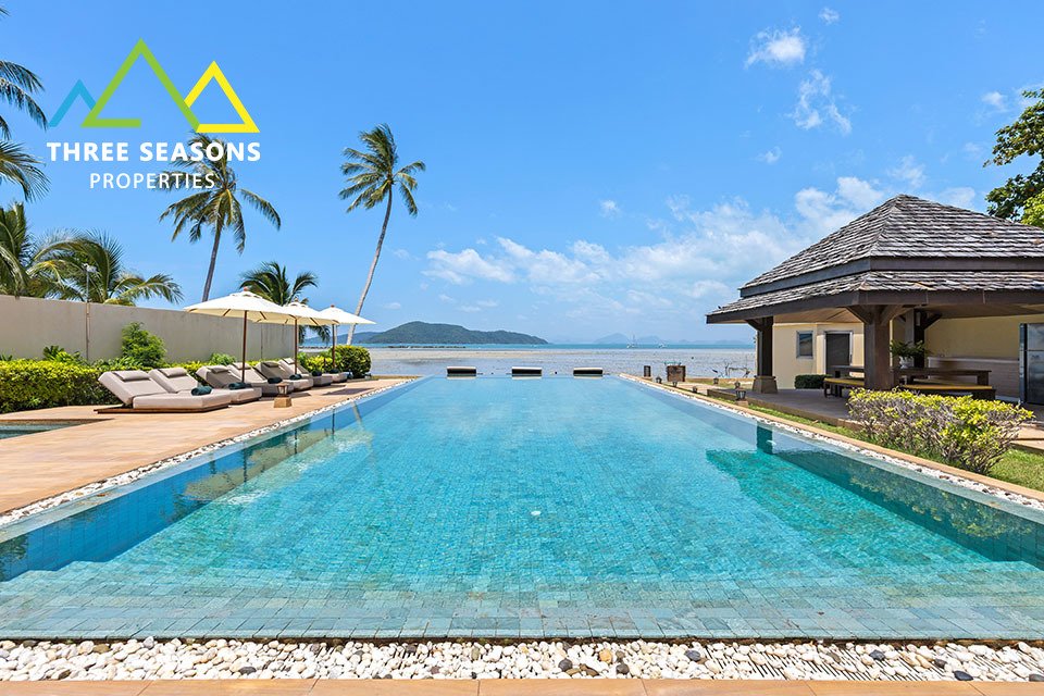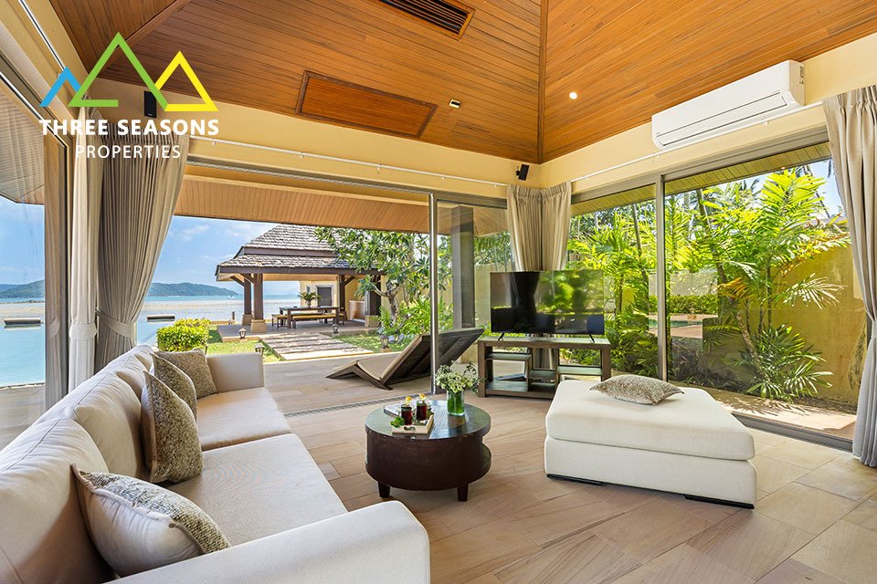 An exceptional beachfront property located on the peaceful southern coast of Koh Samui, in the highly sought-after area of Taling Ngam. Designed to offer privacy, elegance, and effortless tropical living, this stunning five-bedroom villa is perfectly positioned directly on the shores of Tong Krut Beach, surrounded by natural beauty and breathtaking sea views.