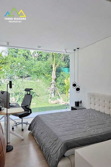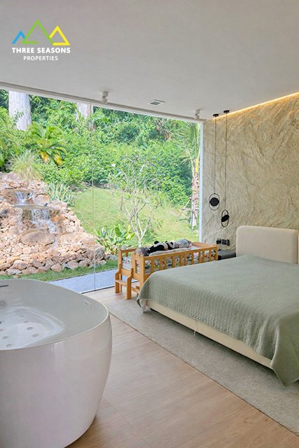 This one-of-a-kind 2-bedroom private pool villa offers exceptional privacy, modern architecture, and a peaceful natural setting. Designed with panoramic glass walls and open living spaces, the villa allows natural light to flow throughout while creating a seamless connection with the surrounding greenery.