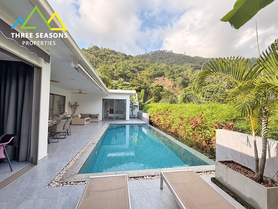 Villa prices range from ฿5 million (~$140,000 USD) for a compact pool villa to over ฿200 million ($5.5M+) for a luxury beachfront estate. The most popular segment — 3-bedroom private pool villas — sits between ฿15M and ฿40M (approx. $420,000–$1.1M USD). Sea view and beachfront villas command a premium of 20–40% over comparable inland properties.